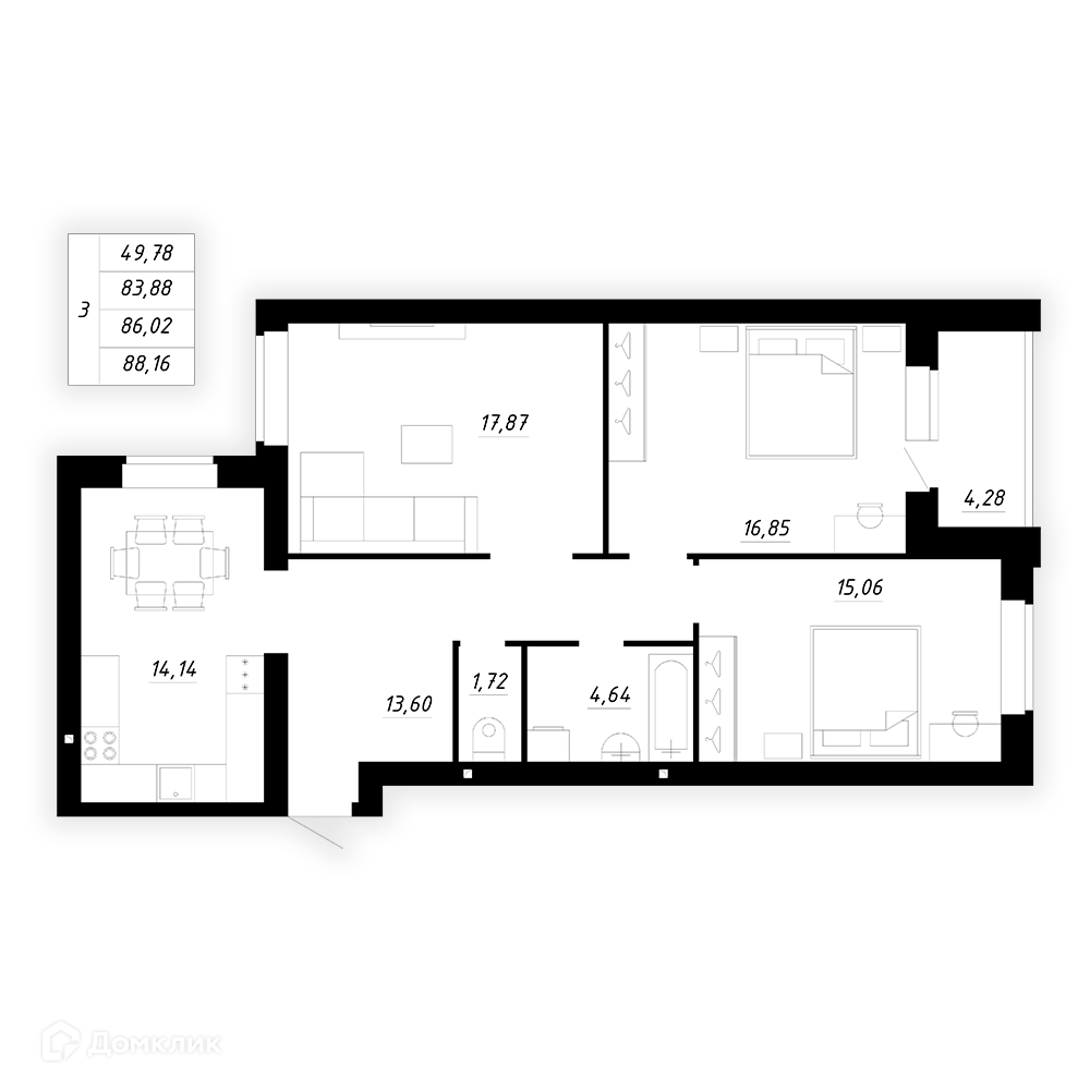 Площади квартир