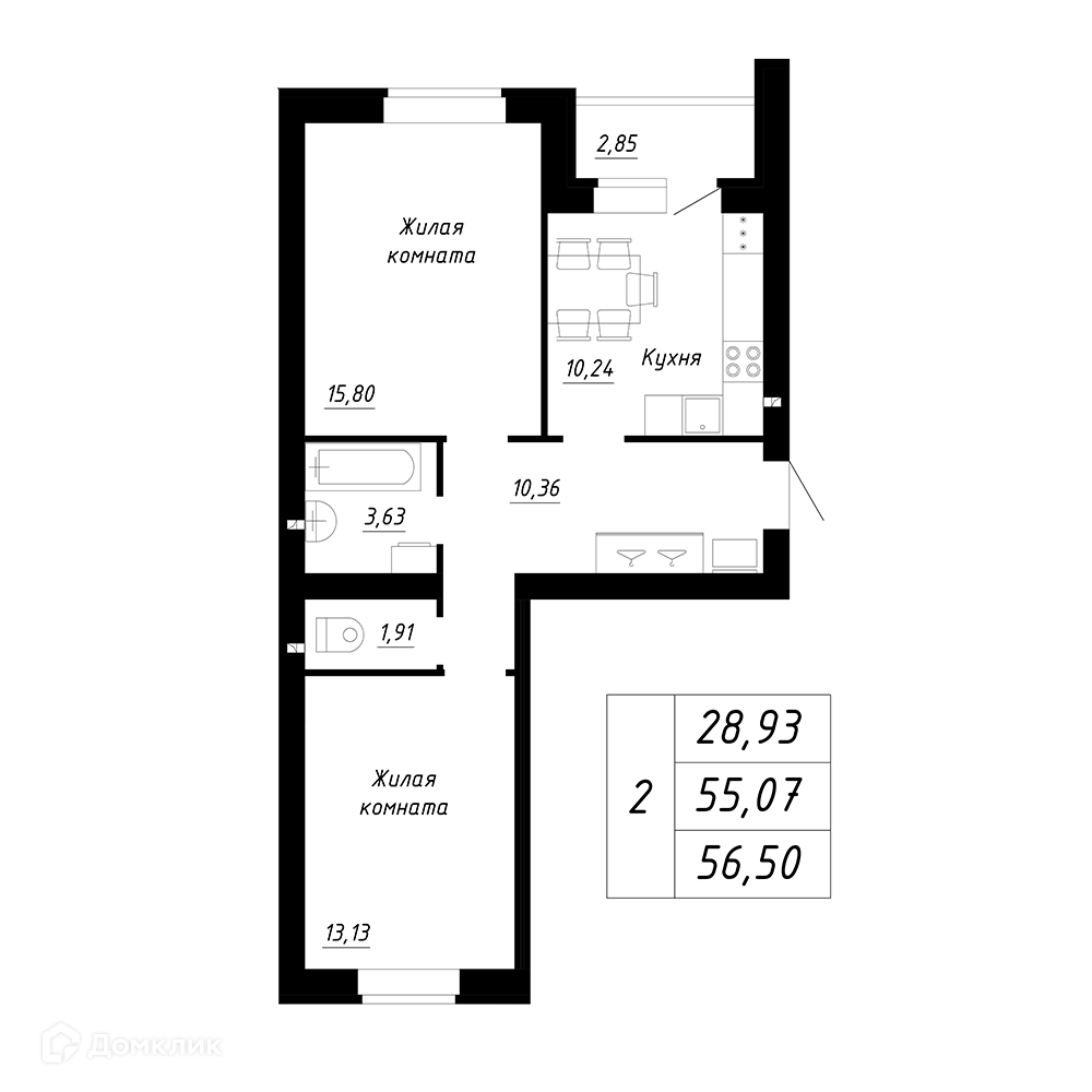 - ✅ Кухня: 10.24 м² — эргономичное пространство.