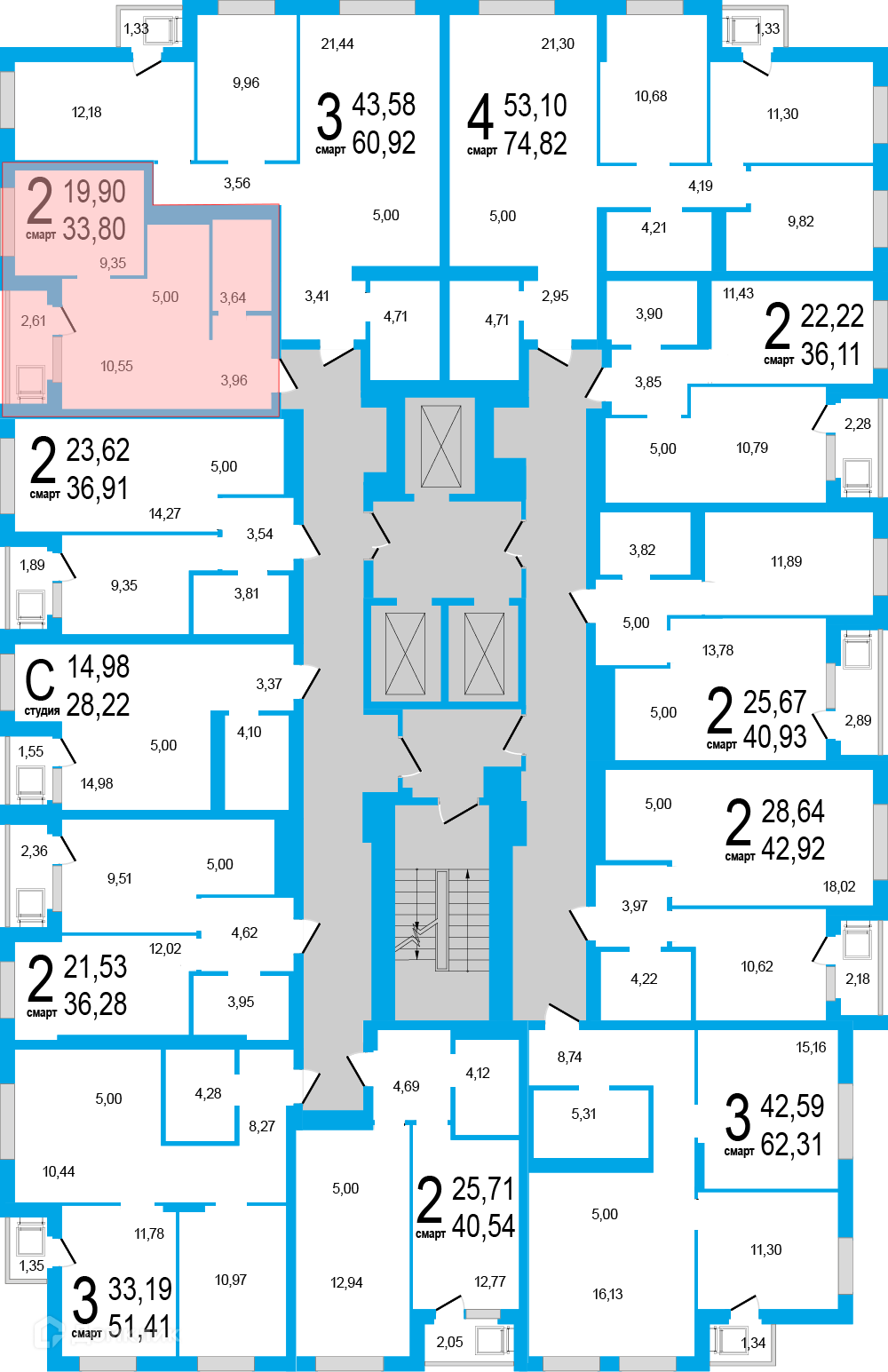 Площади квартир