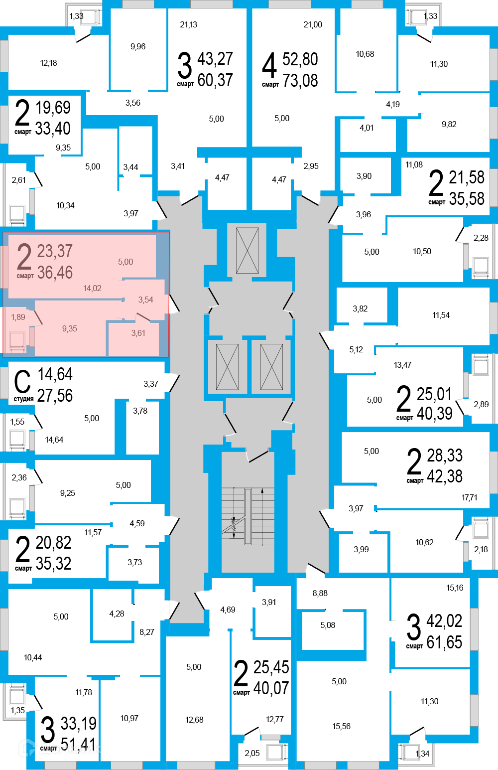 Площади квартир