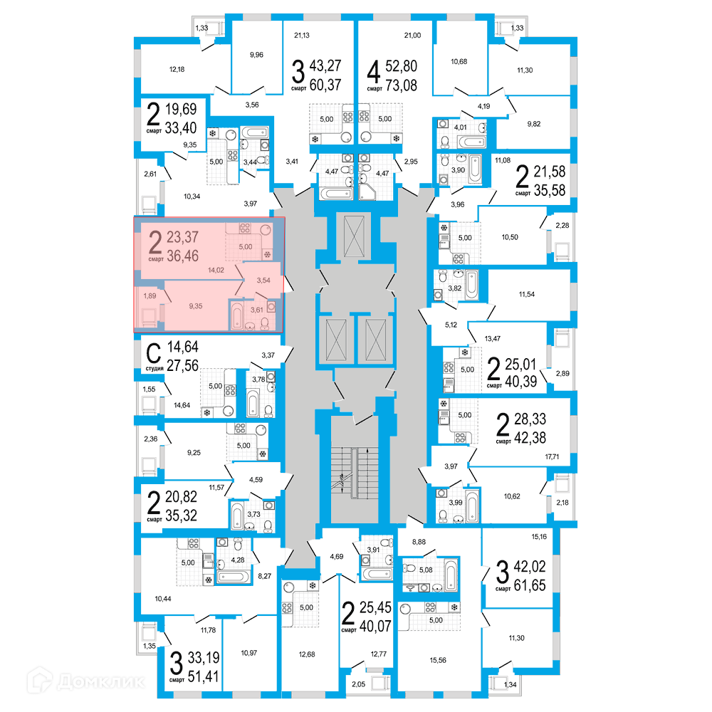 Площади квартир