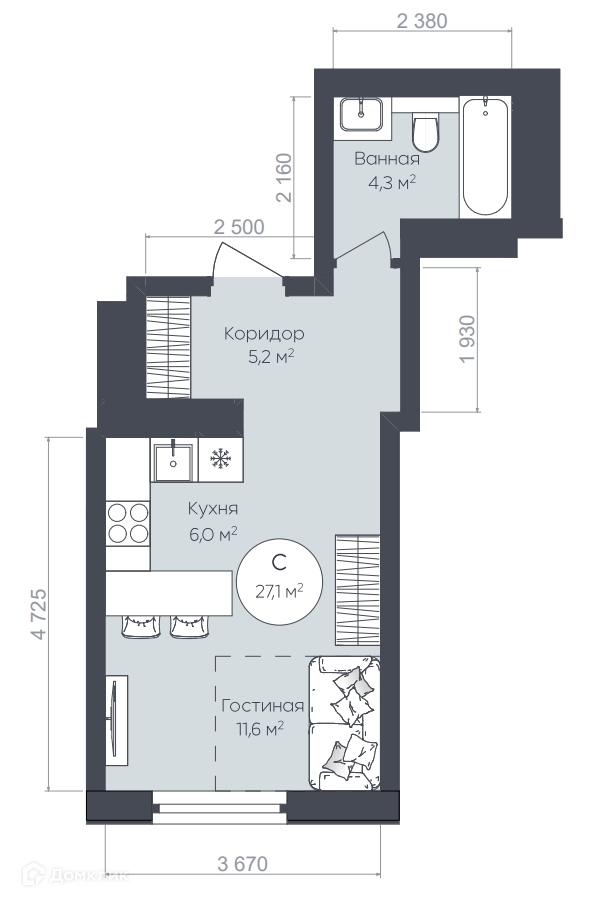 - ✅ Кухня: 0 м² — место для кулинарных шедевров.