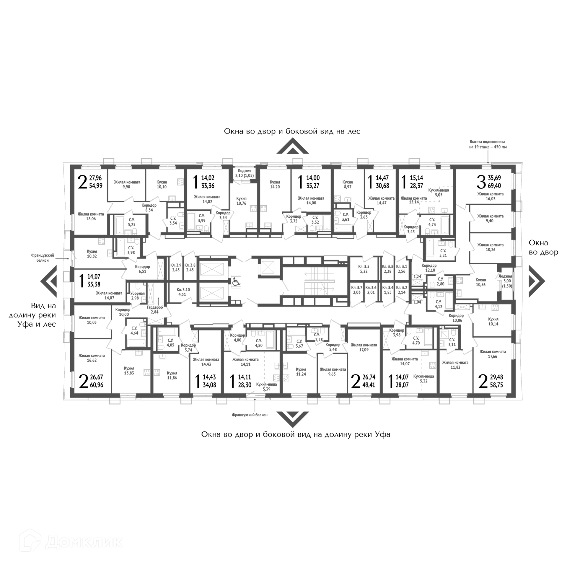 Площади квартир