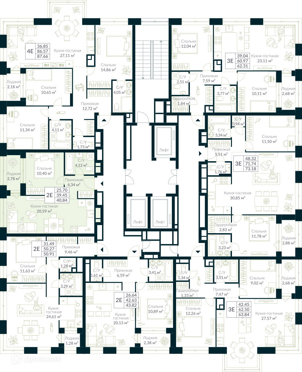 Площади квартир