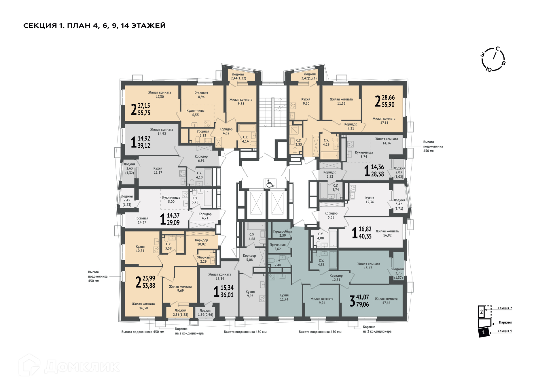 Площади квартир