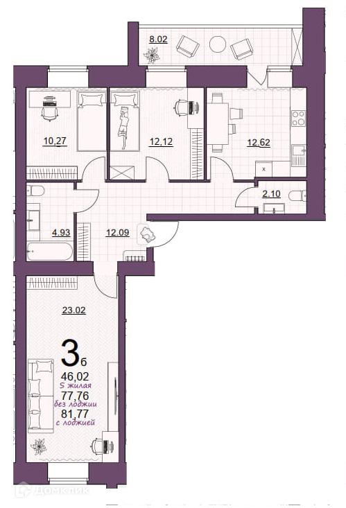Планировка 3 комн. в ЖК Дом по ул Шашина