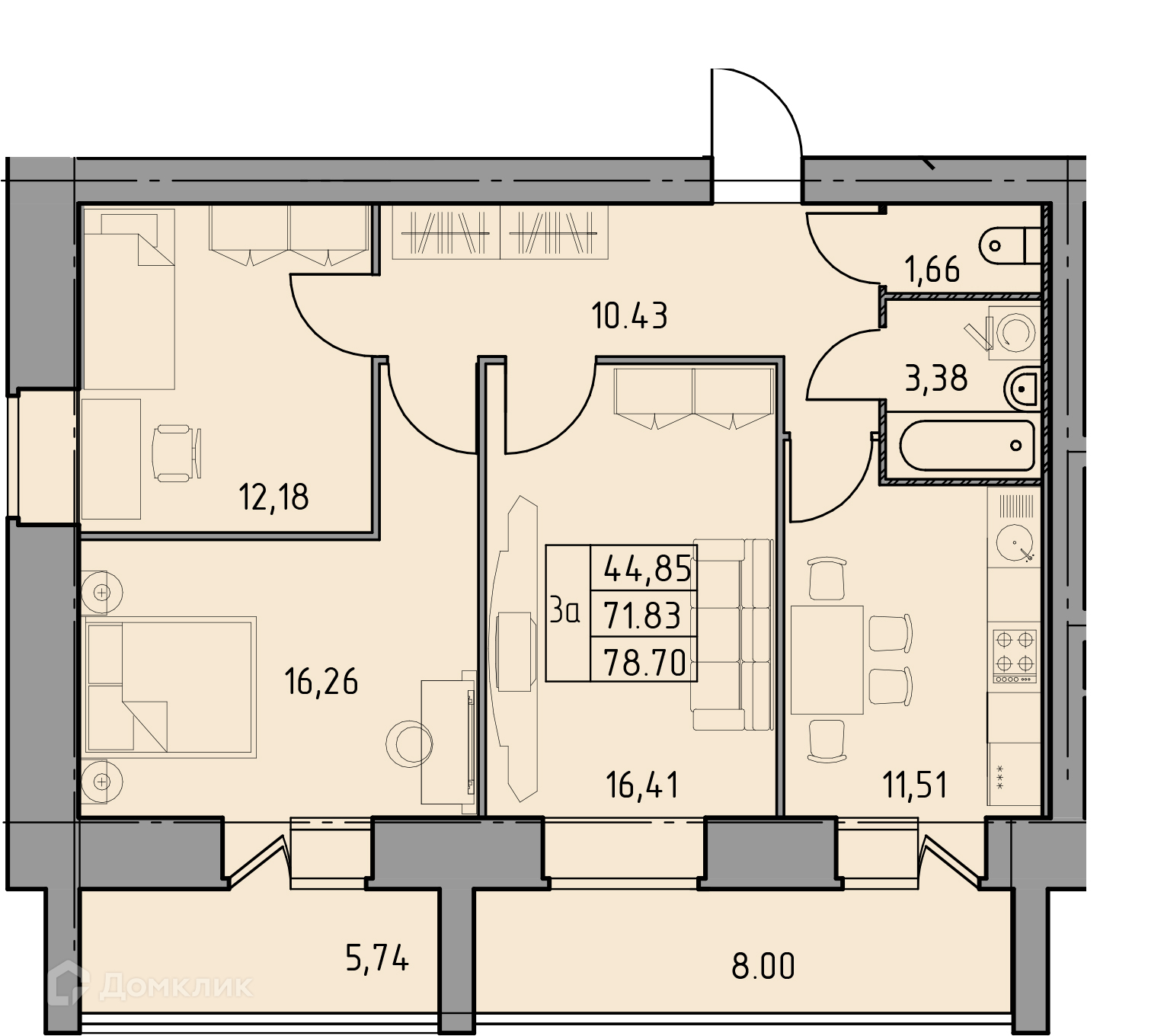 - Общая площадь: 78.7 м²