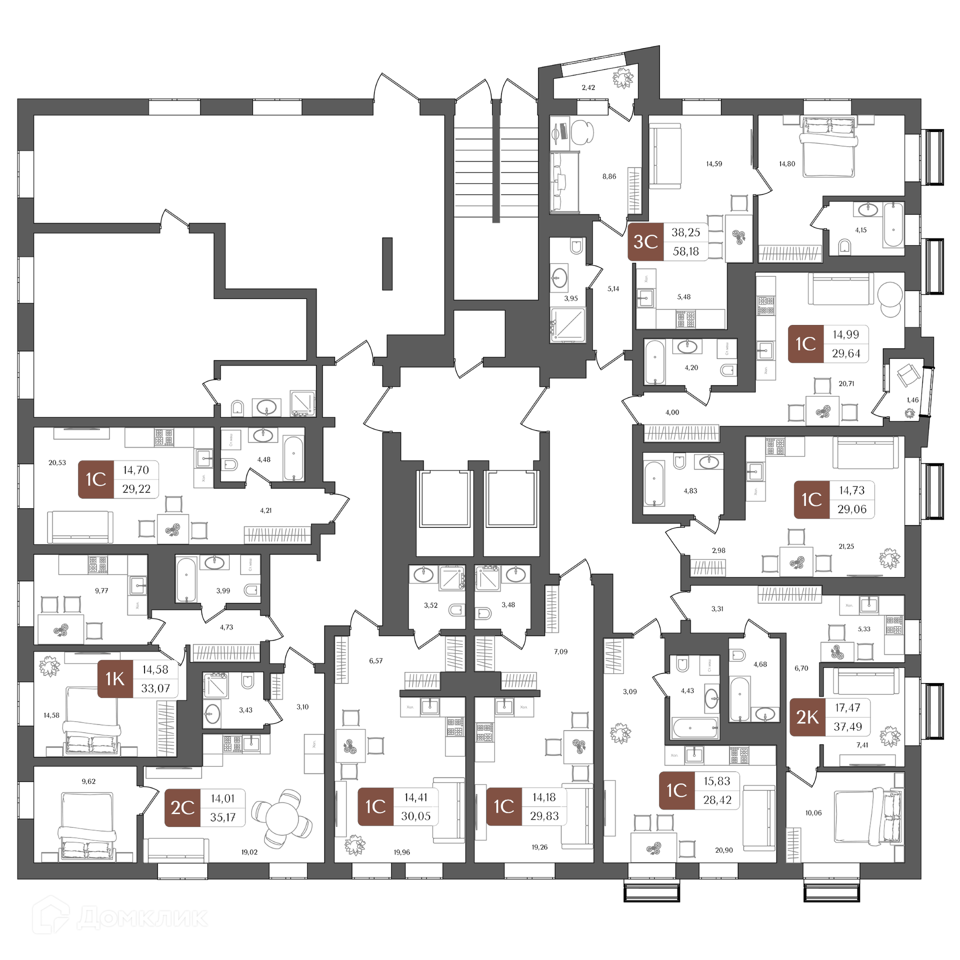 Площади квартир