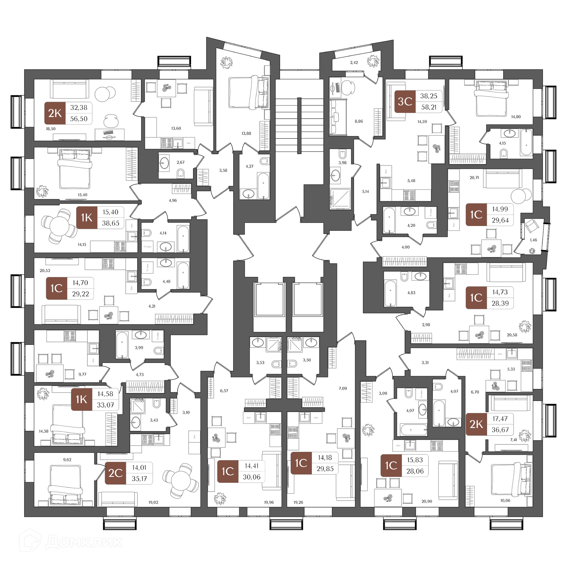 Площади квартир