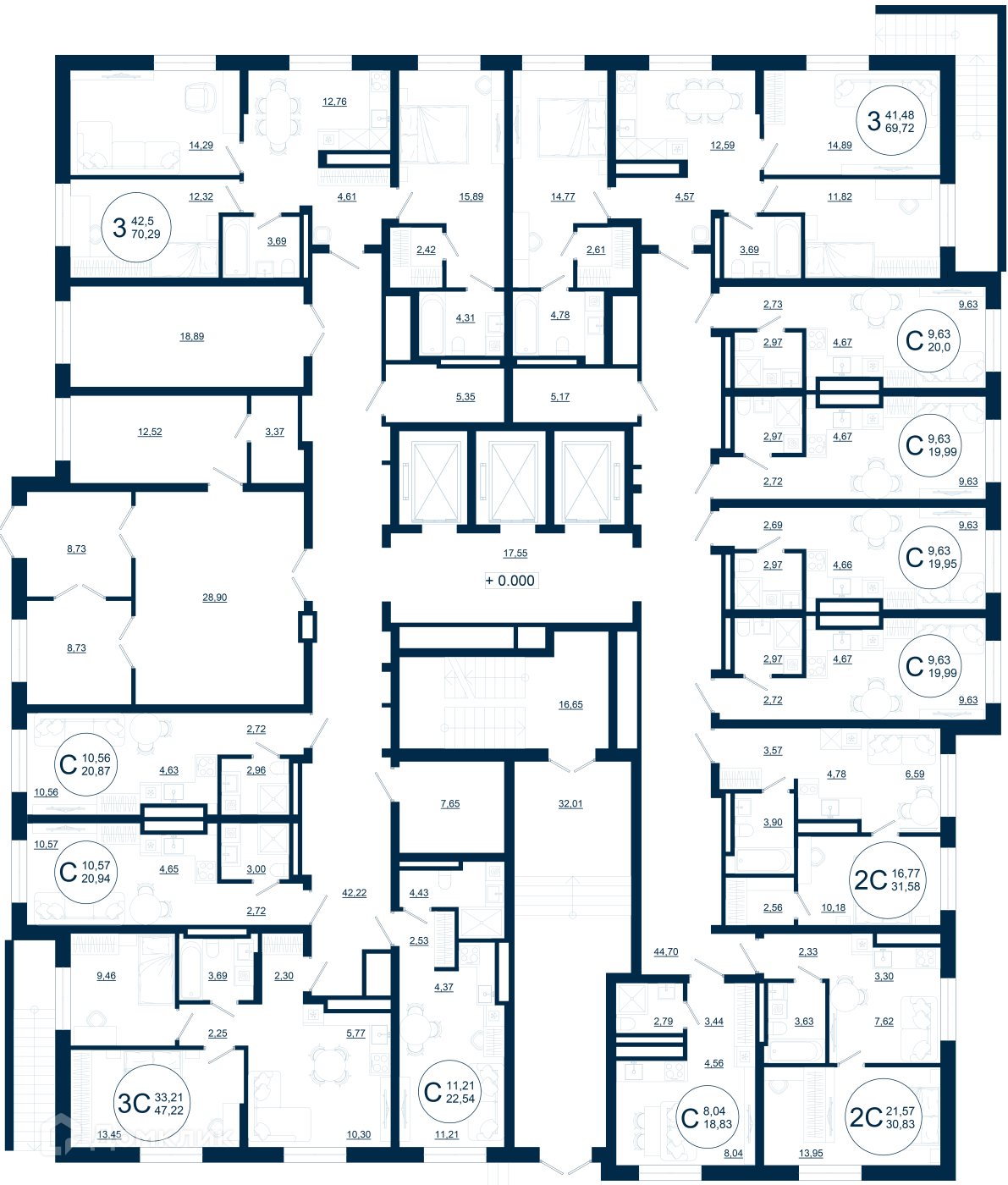 Площади квартир