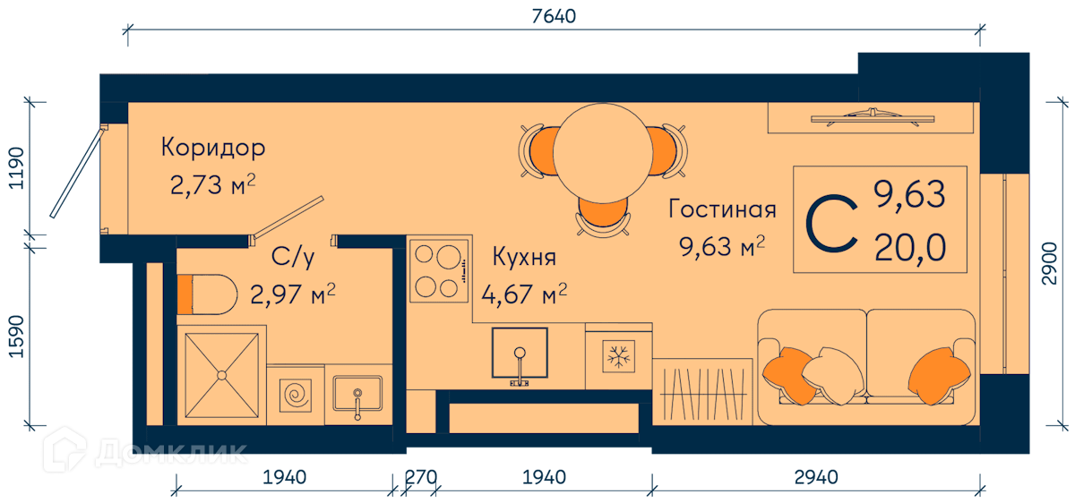 - ✅ Кухня: - м² — место для кулинарных шедевров.