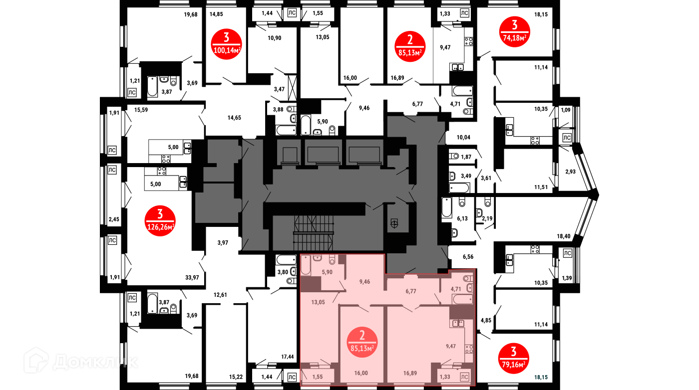 Площади квартир
