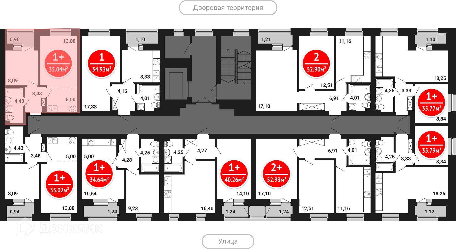 Площади квартир
