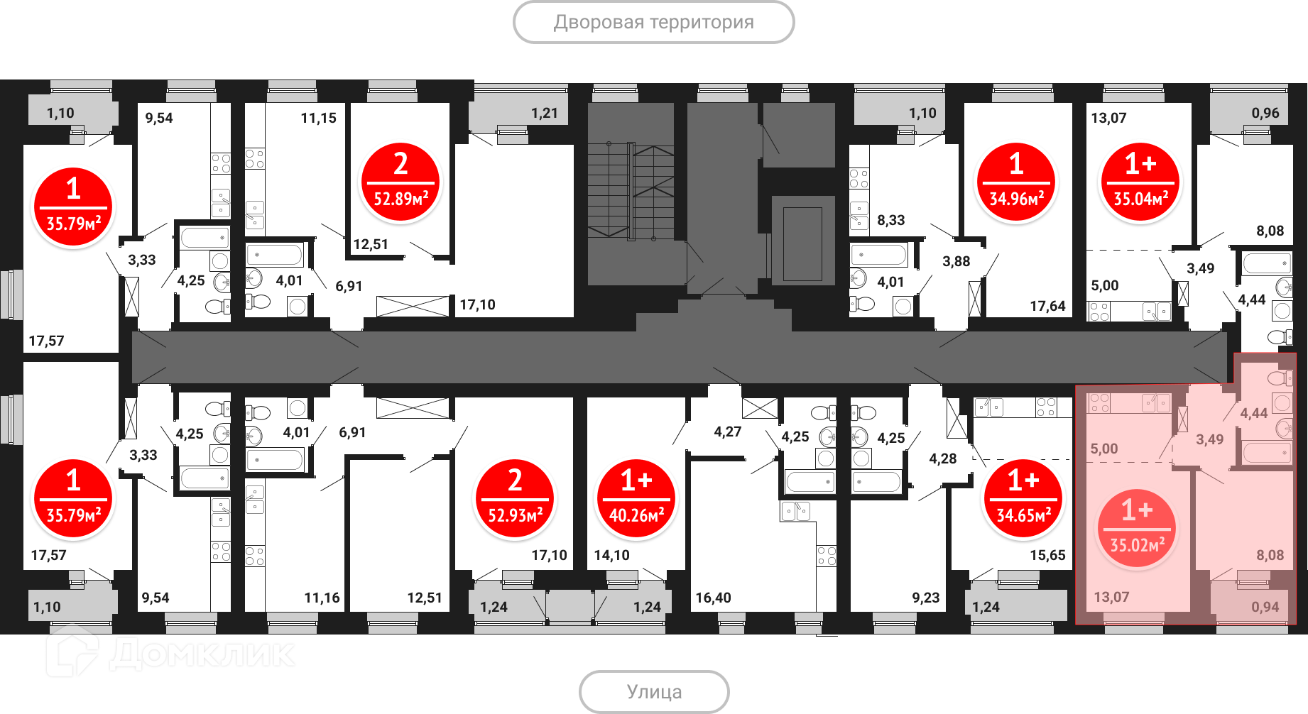 Площади квартир