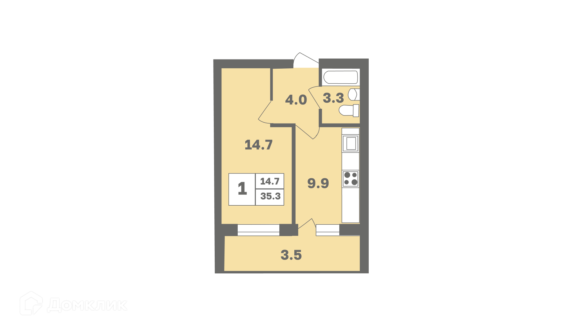 - Общая площадь: 35.3 м²