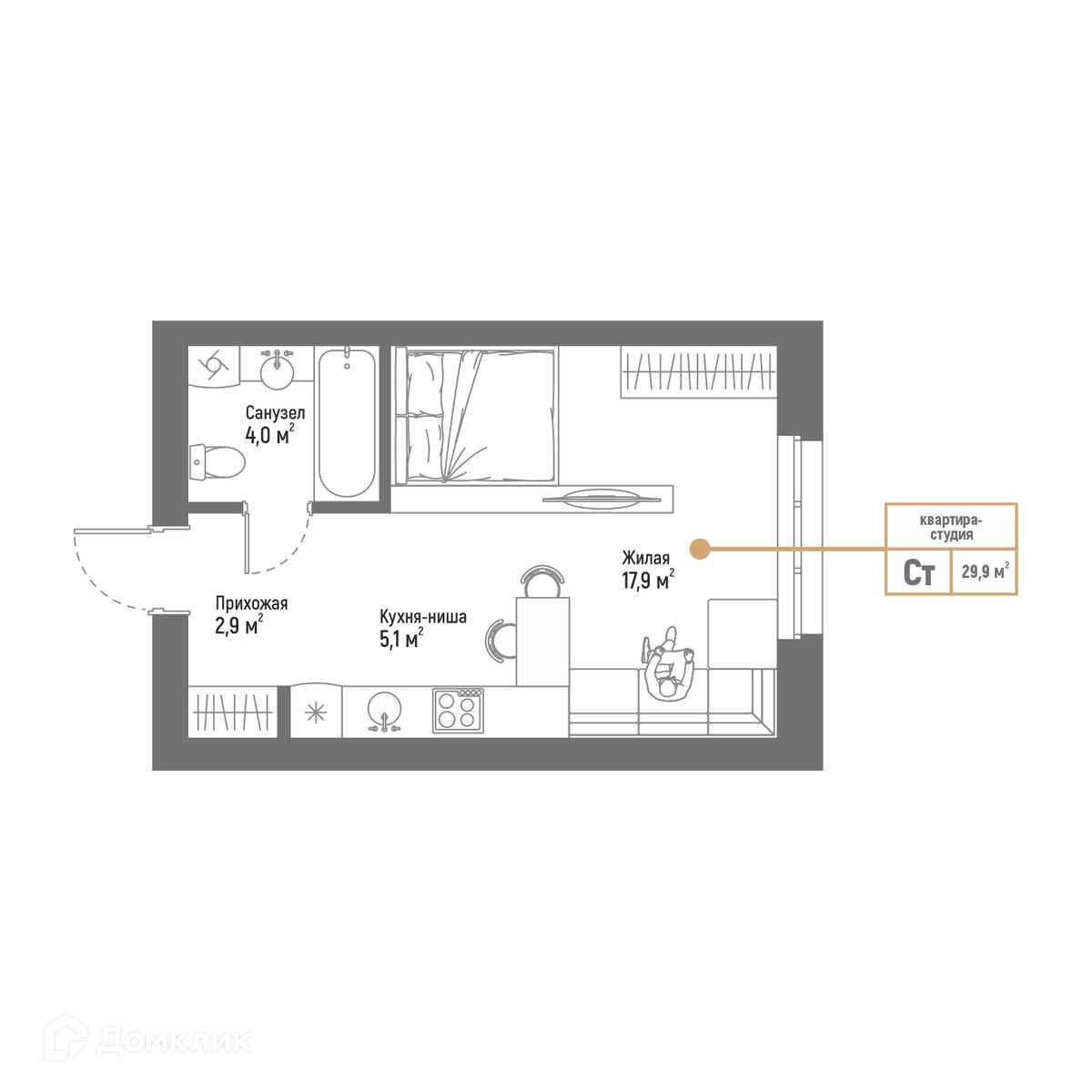 Планировка Студия в ЖК Браво