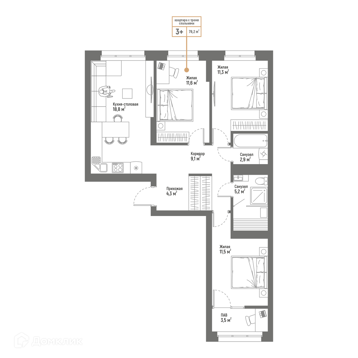 3-комнатная