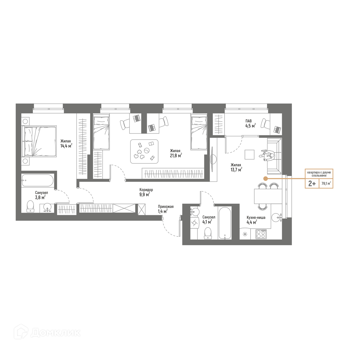 - ✅ Общая площадь: 78.1 м².
