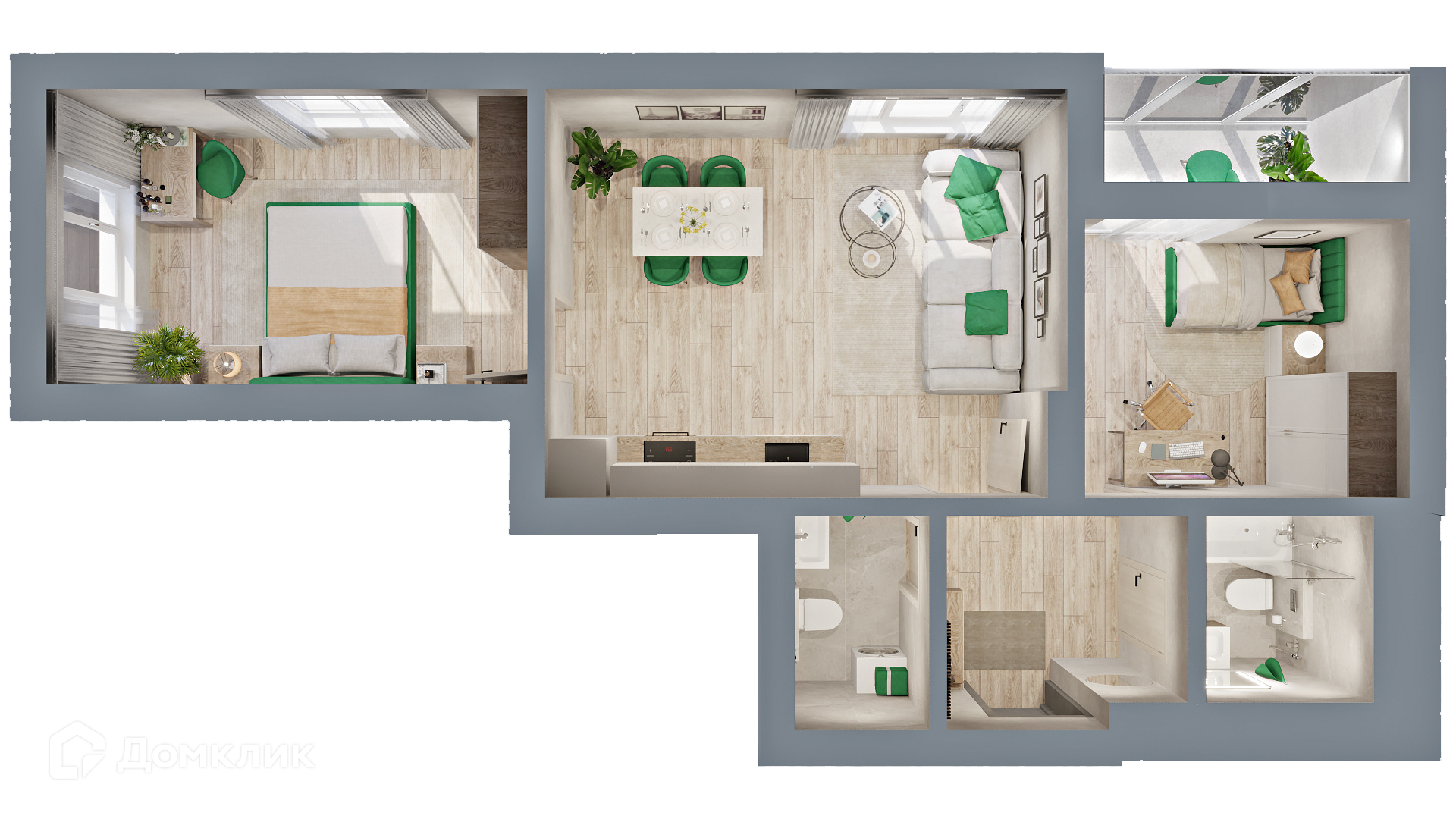 - ✅ Кухня: 9.52 м² — идеальна для семейных ужинов.