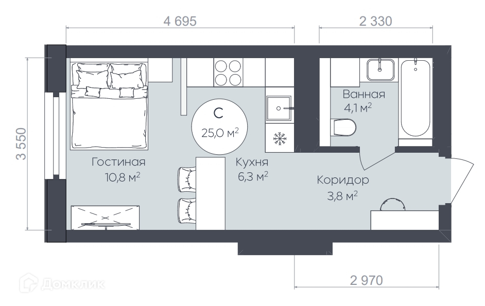 - ✅ Кухня: 0 м² — место для кулинарных шедевров.
