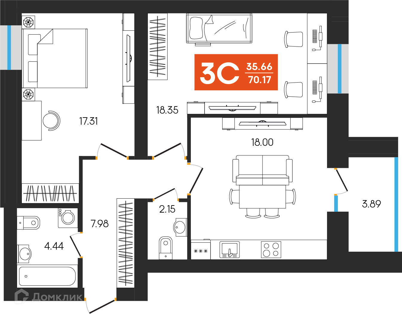 Планировка 3 комн. в ЖК Симфония