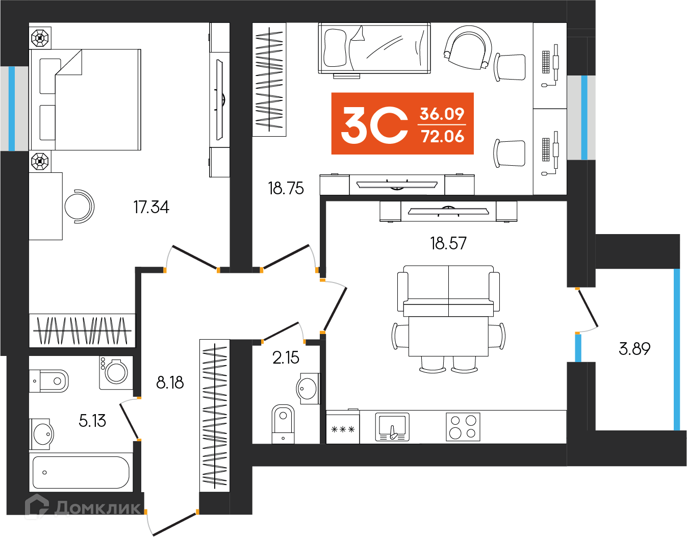 Планировка 3 комн. в ЖК Симфония