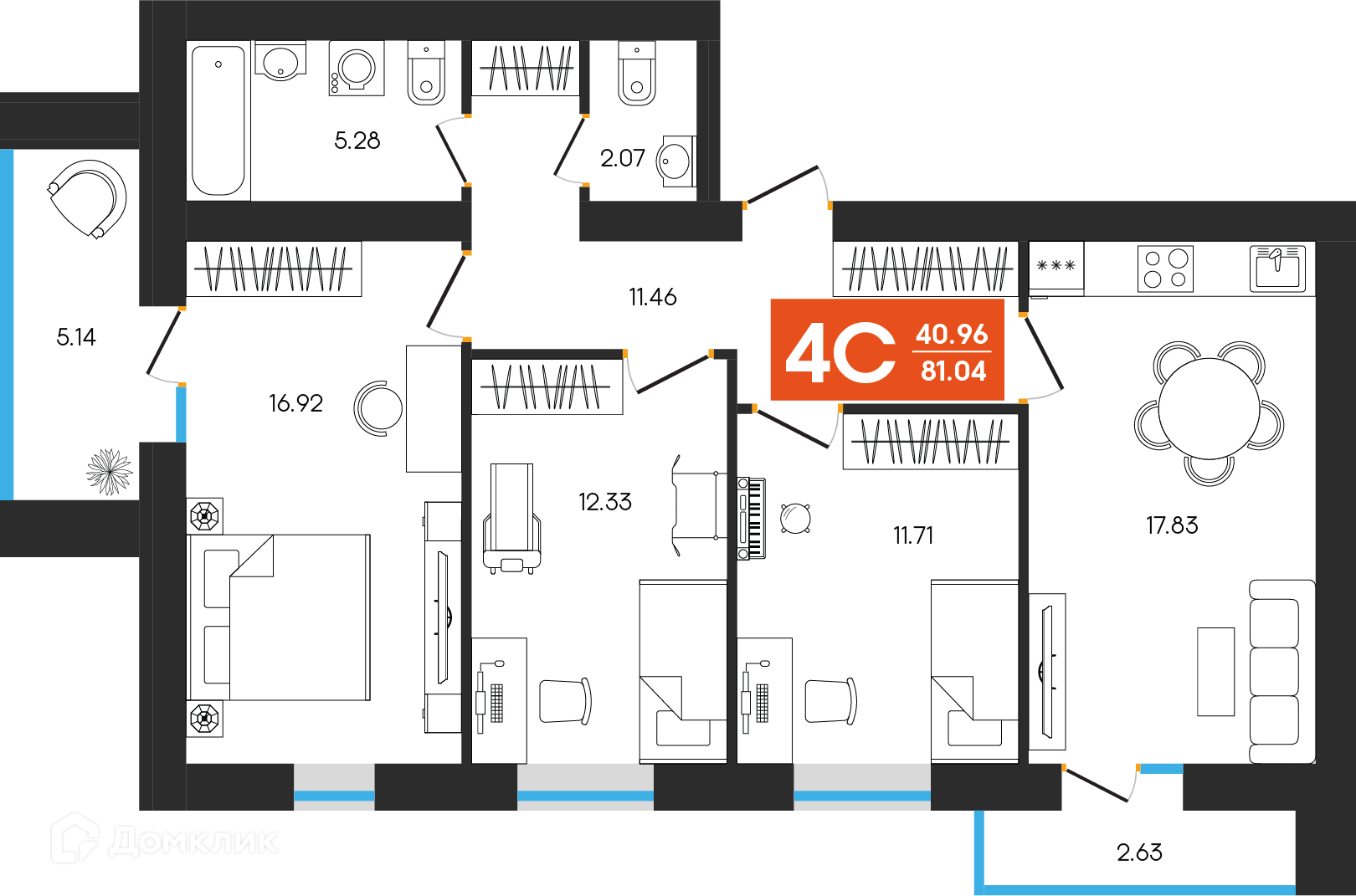 - ✅ Кухня: 17.83 м² — идеальна для семейных ужинов.