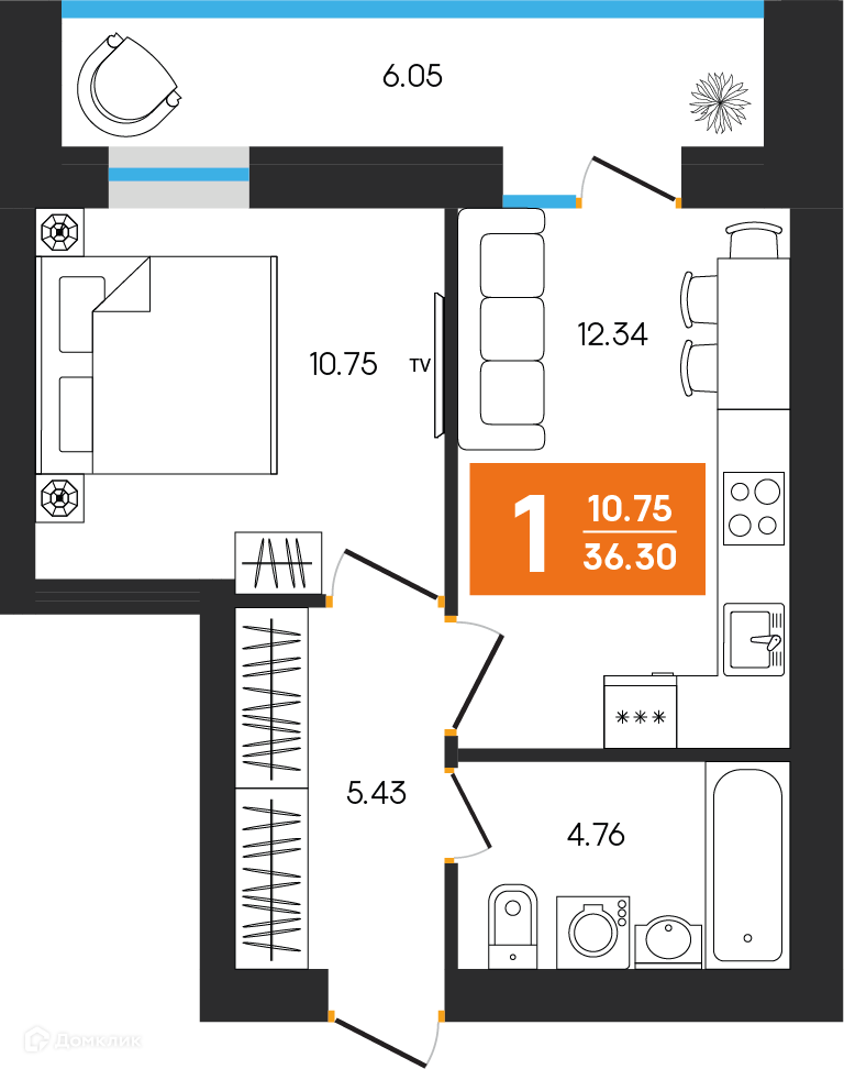 Планировка 1 комн. в ЖК Симфония