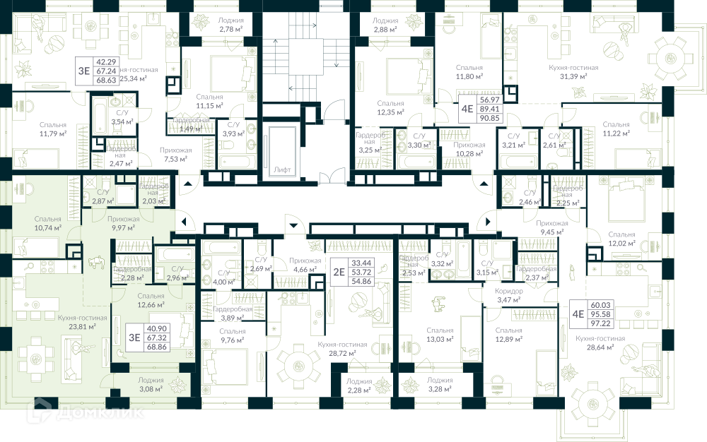 Площади квартир