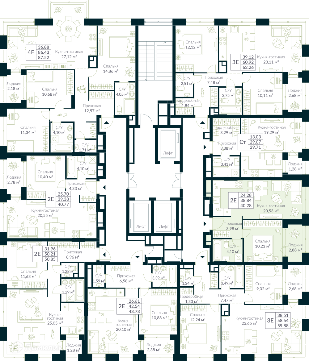 Площади квартир