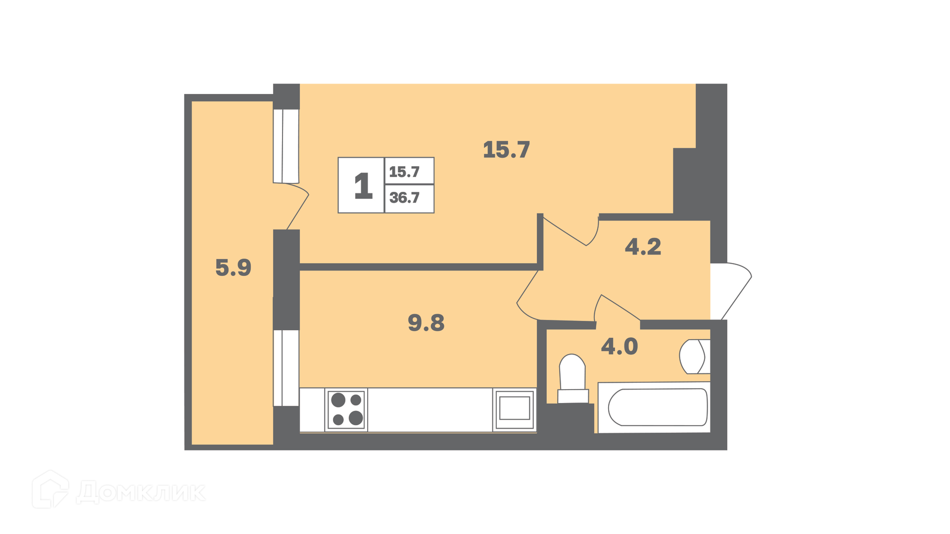 - ✅ Светлая жилая площадь: 15.7 м².
