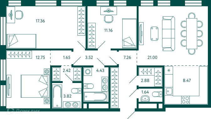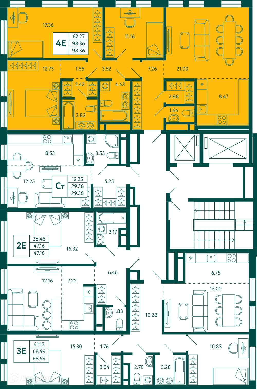 Площади квартир