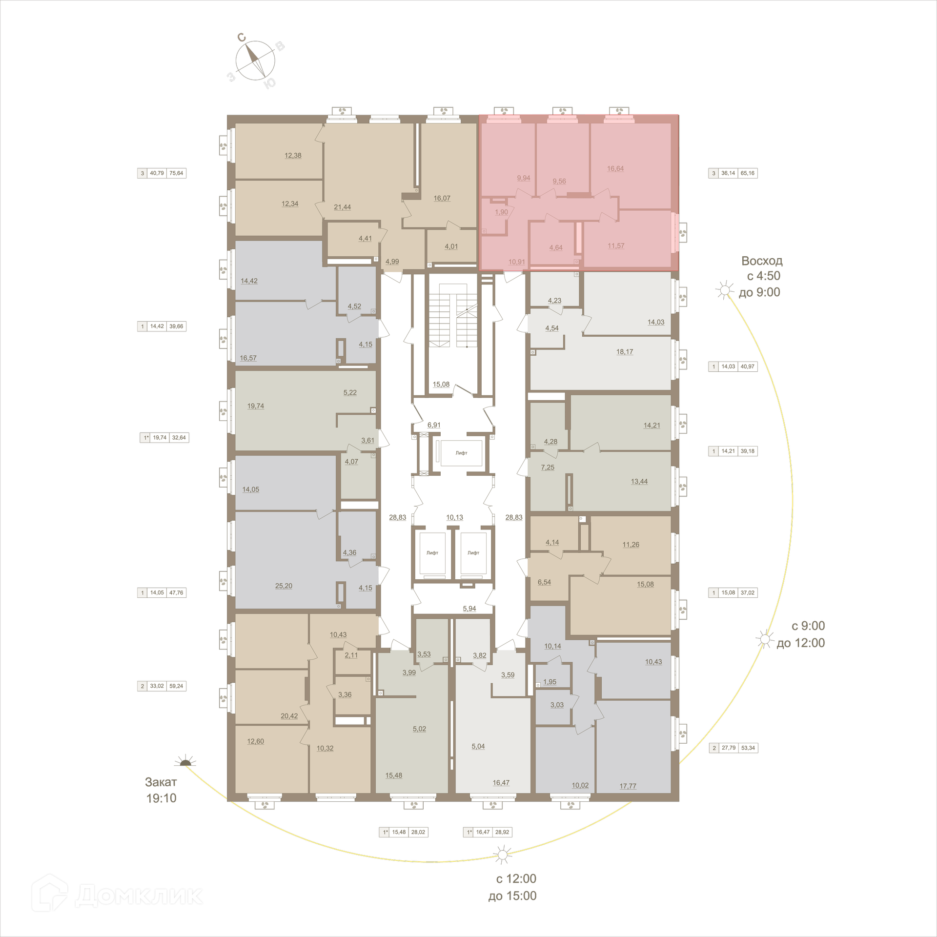 Площади квартир