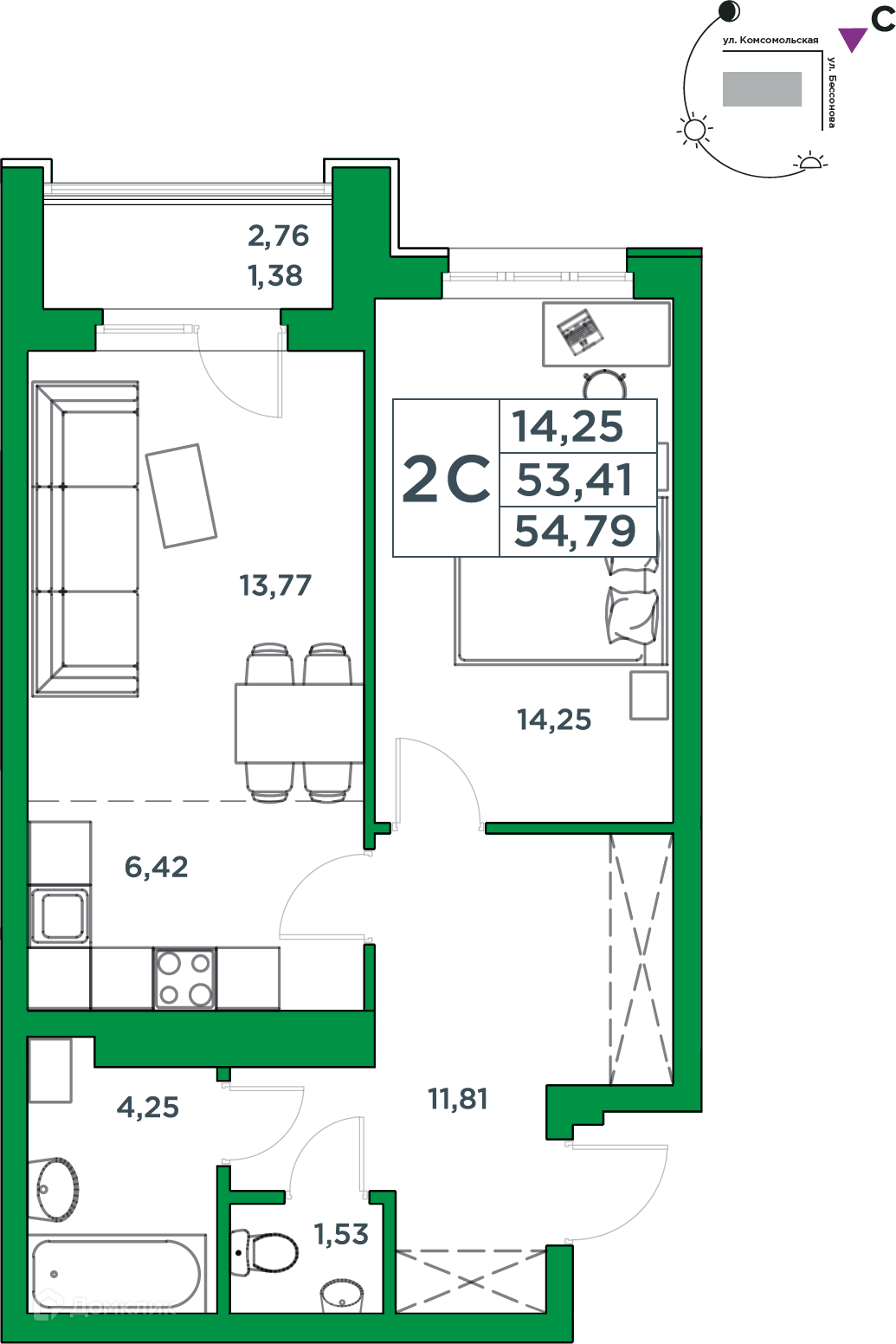 - ✅ Уютная жилая площадь: 14.25 м².