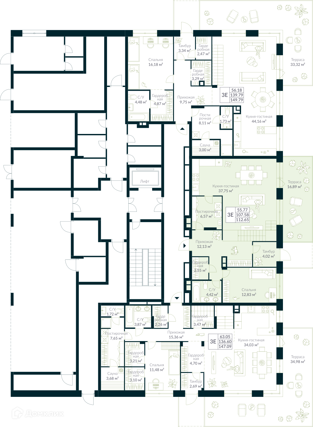 Площади квартир