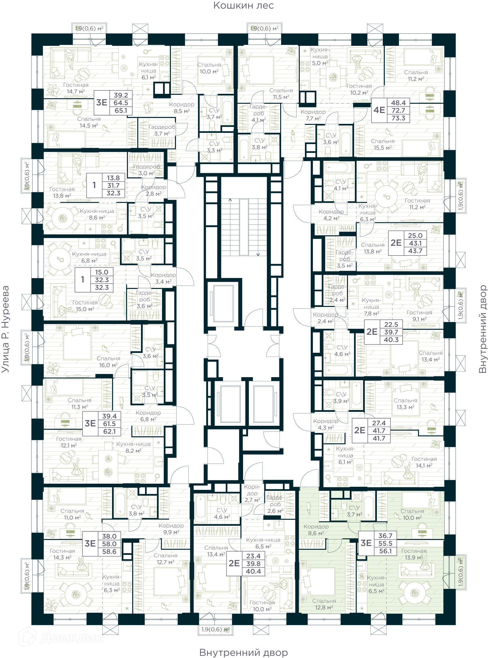 Площади квартир