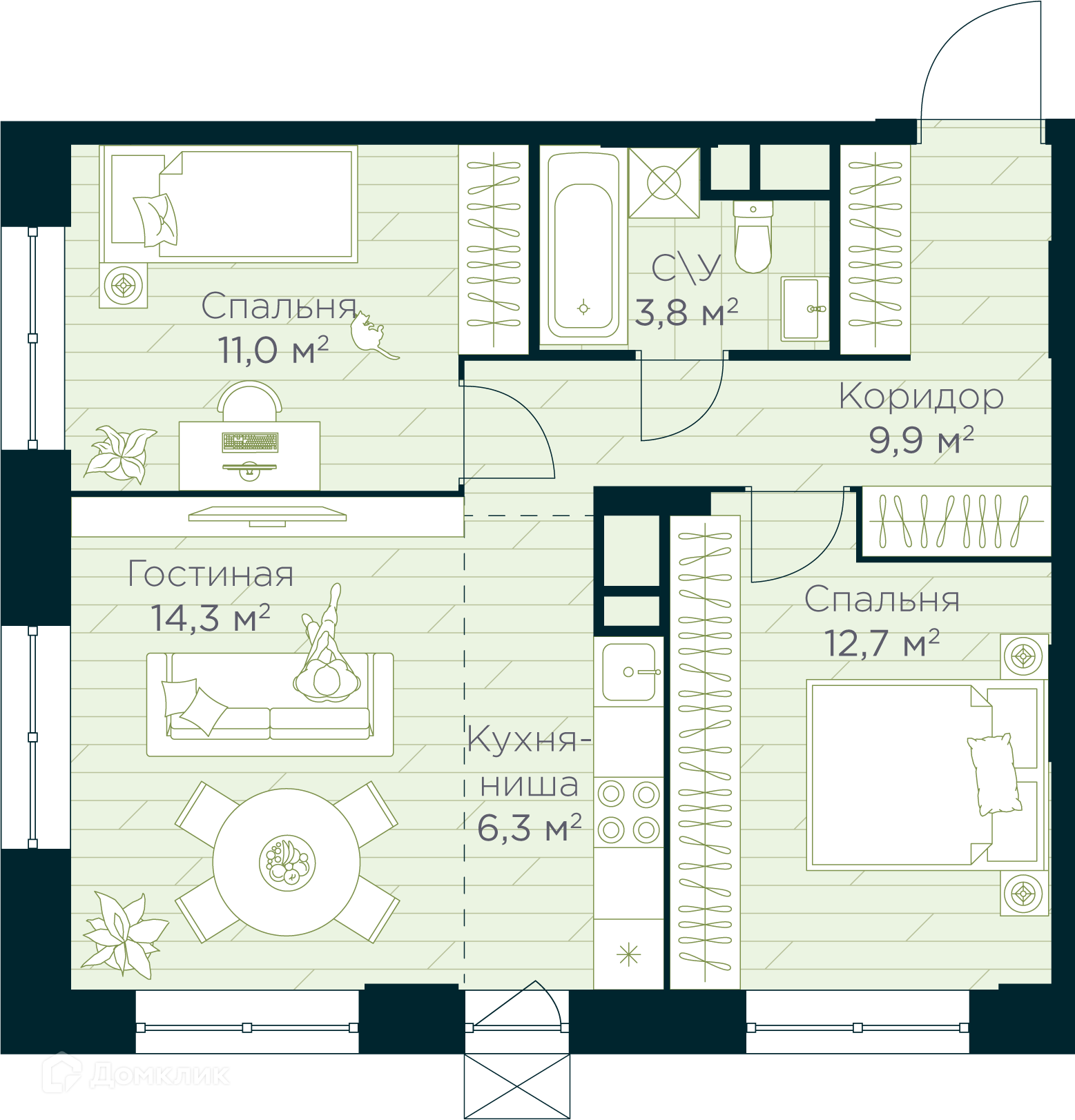 В продаже 3-комнатная квартира в современном жилом комплексе "ЖК URMAN Сity (Урман Сити)" 🏢. Квартира расположена на 13-м этаже 30-этажного дома. Отличный вариант для комфортной жизни.