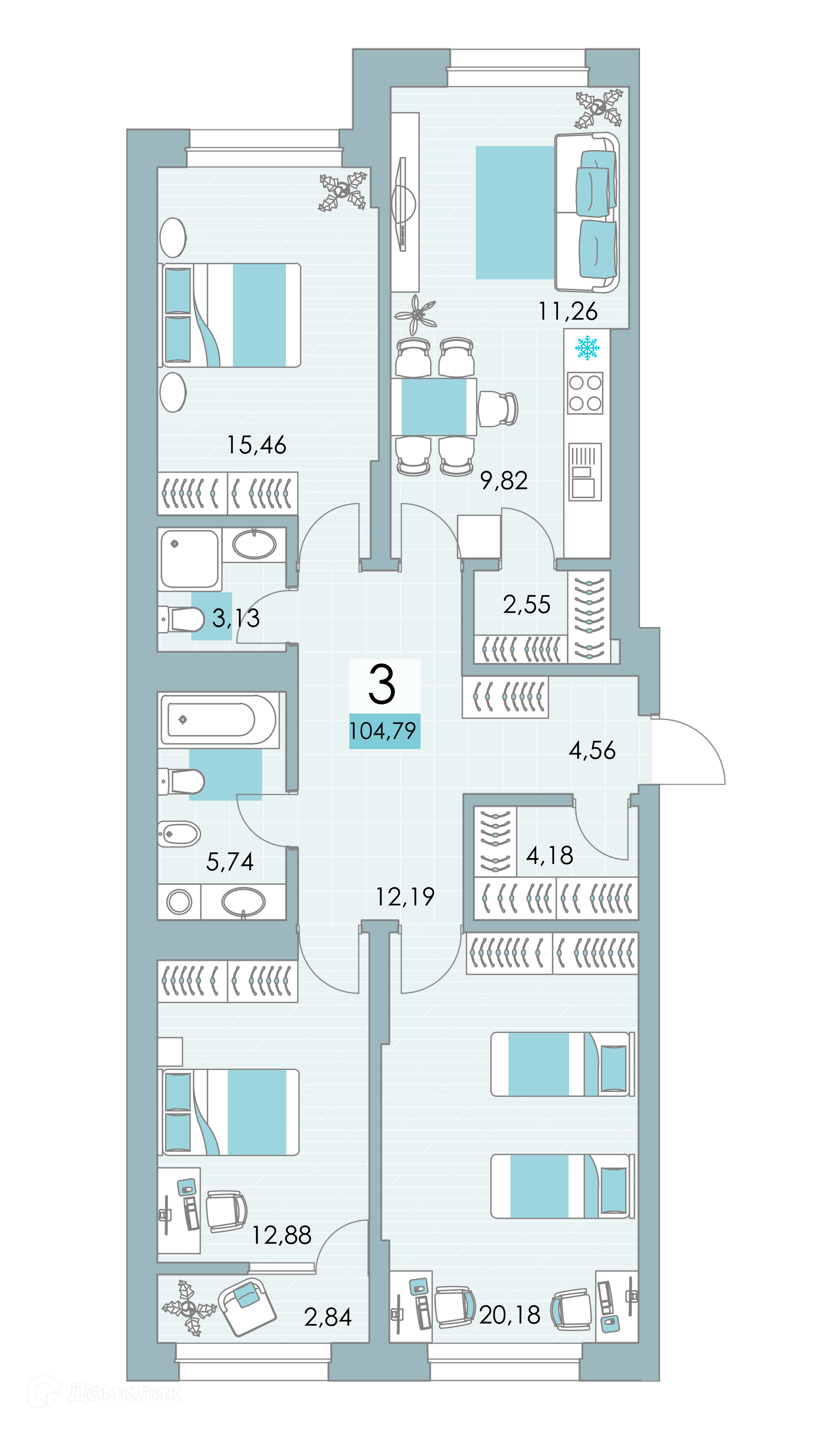 В продаже 3-комнатная квартира в востребованном жилом комплексе "ЖК Квартал Самоцветы" 🏢. Квартира расположена на 6-м этаже 27-этажного дома. Отличный вариант для комфортной жизни.