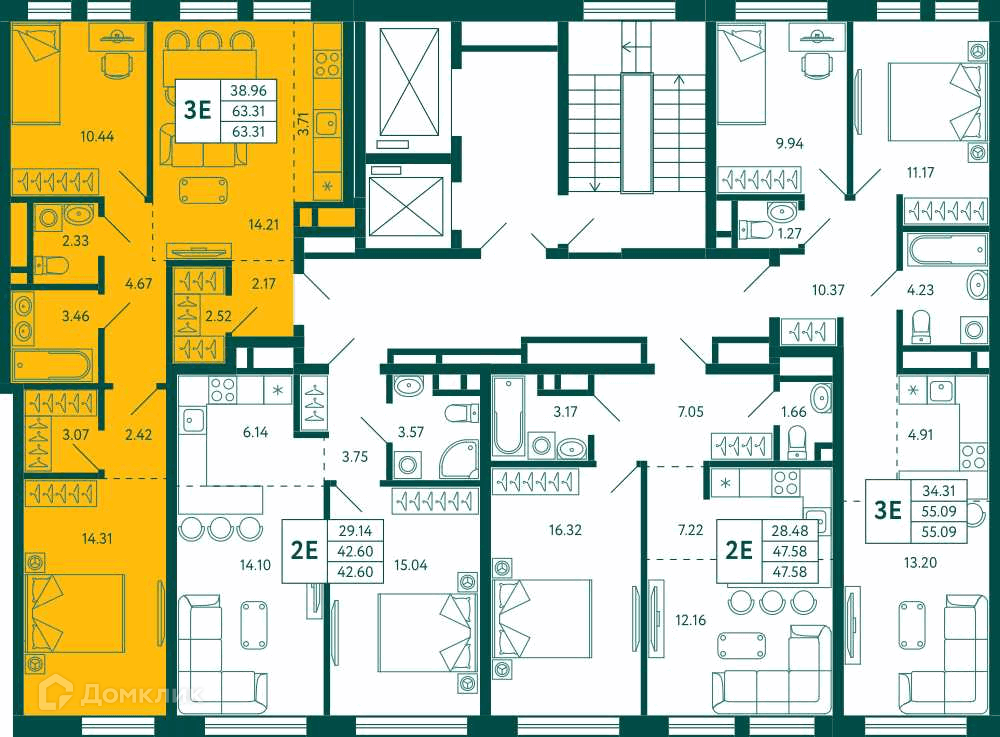 Площади квартир