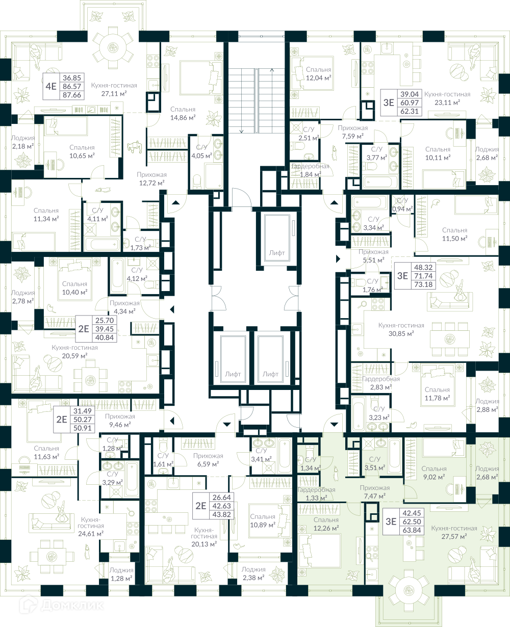 Площади квартир