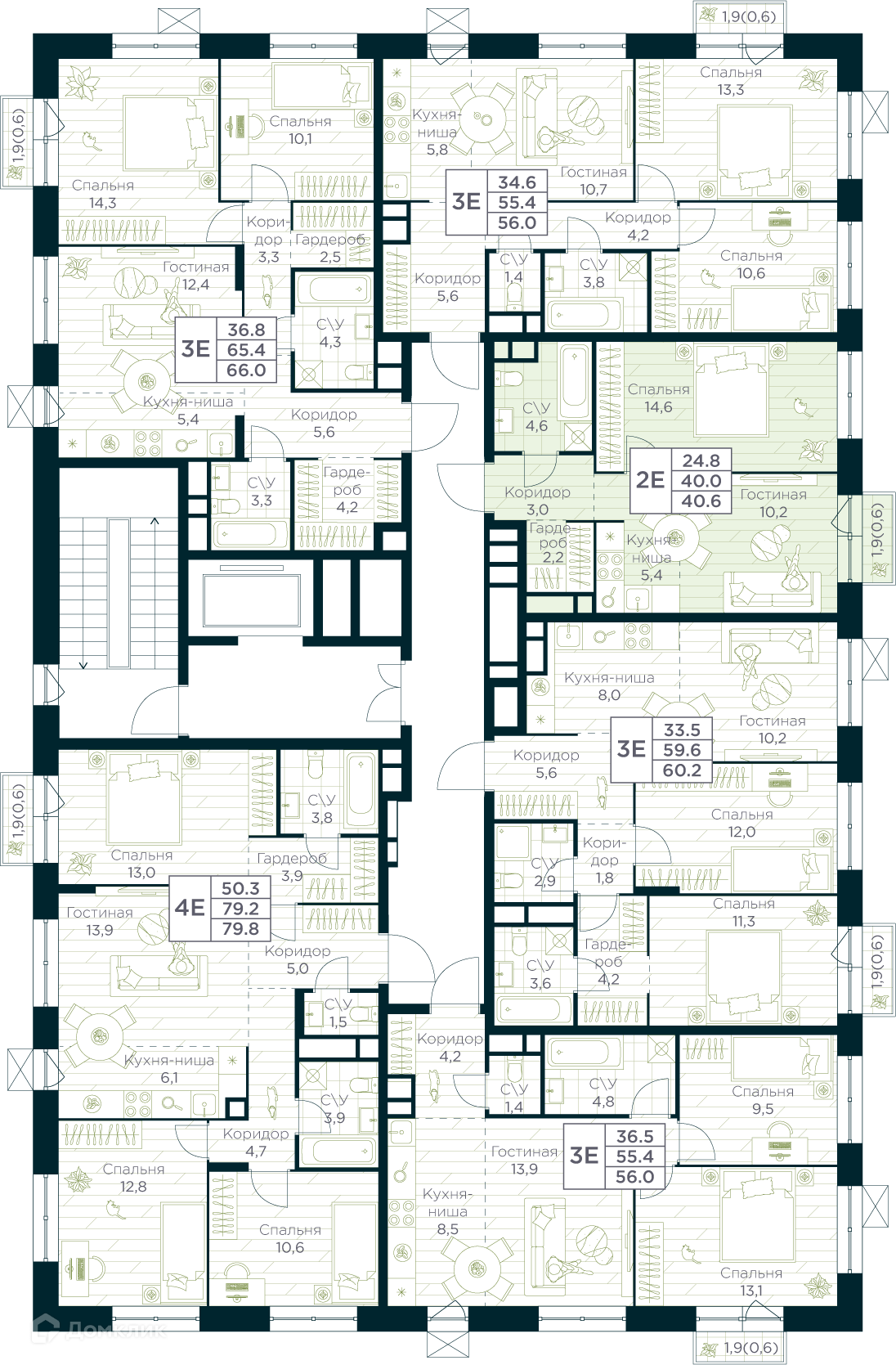 Площади квартир