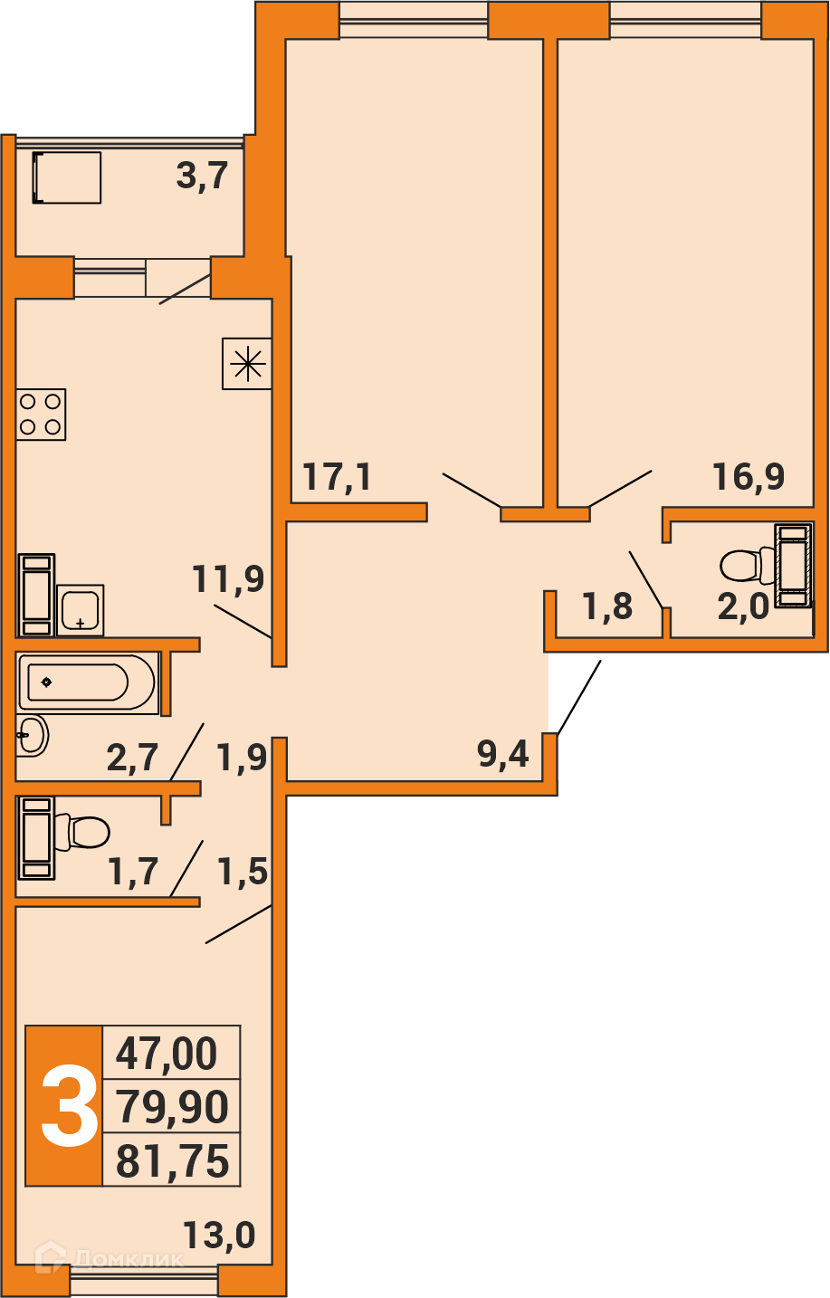 - Общая площадь: 81.75 м²