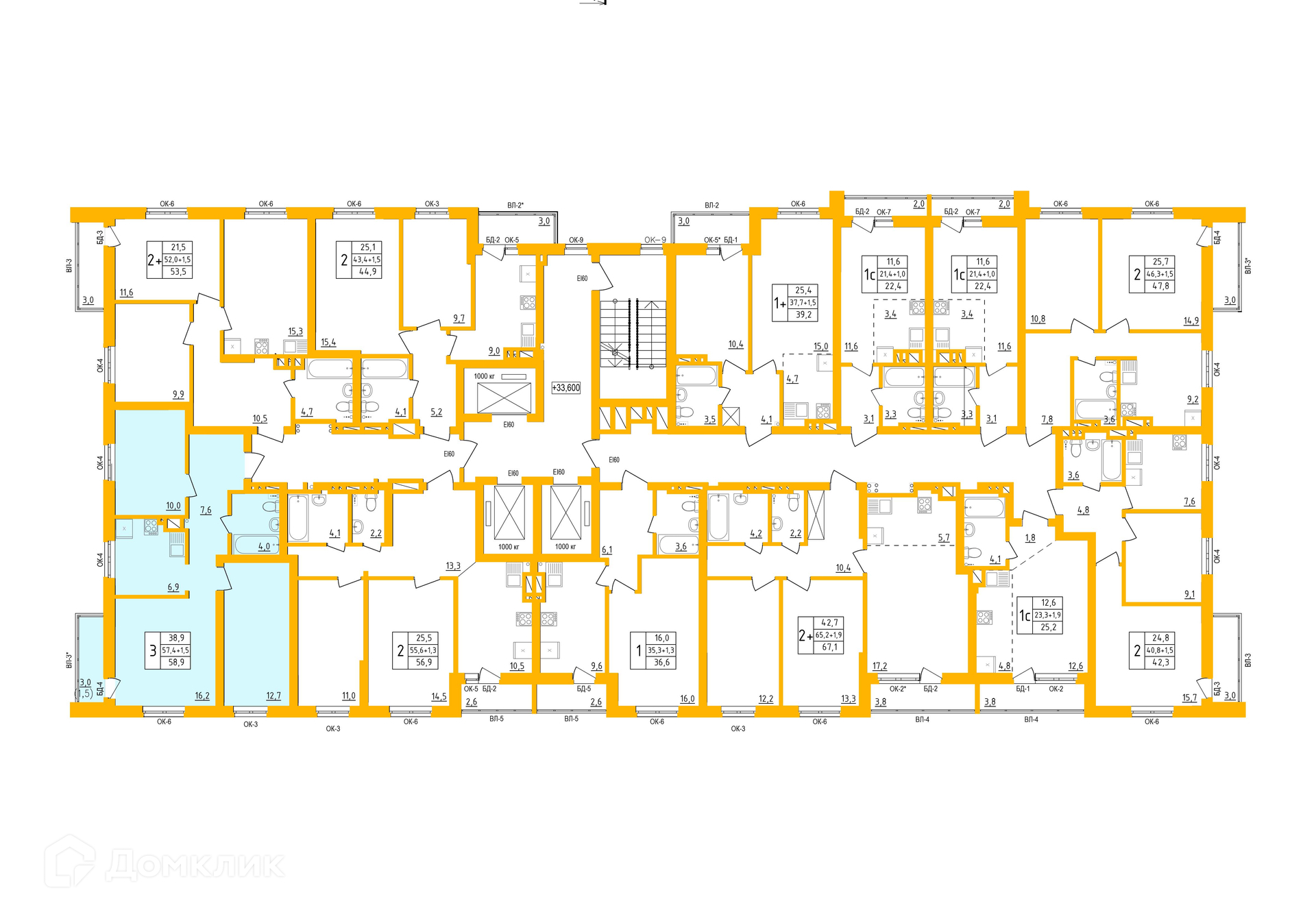 Площади квартир