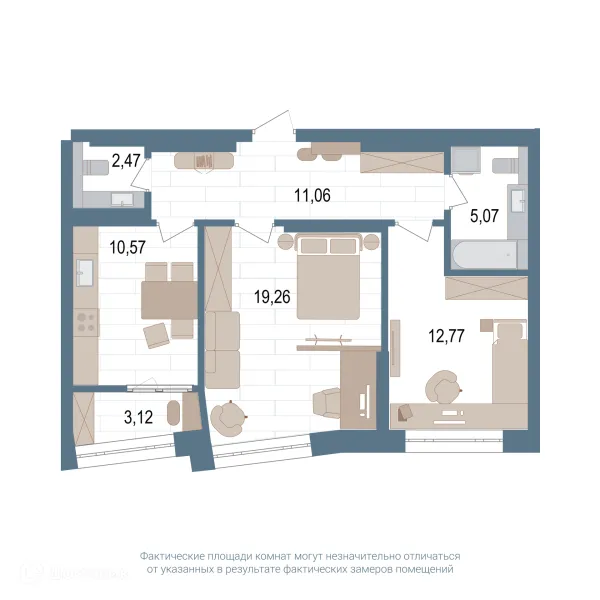 2 комн. квартира в Уфе в ипотеку от 86 259 руб/месяц