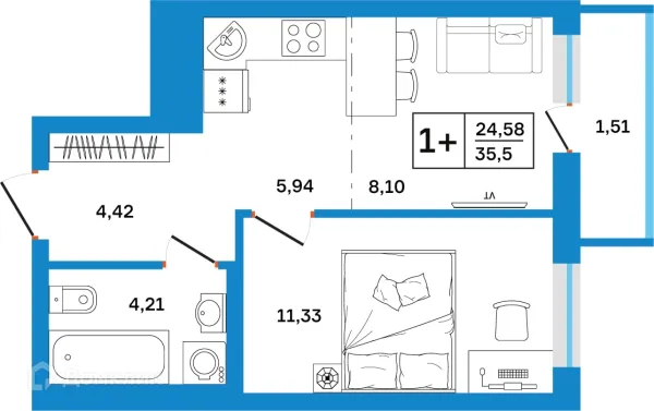 1 комн. квартира в Уфе в ипотеку от 35 377 руб/месяц