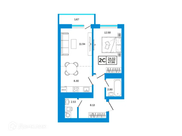 2 комн. квартира в Уфе в ипотеку от 44 413 руб/месяц