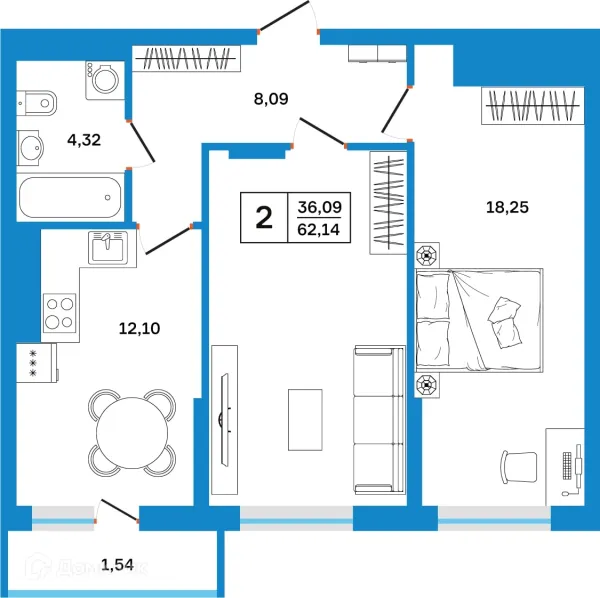 2 комн. квартира в Уфе в ипотеку от 41 536 руб/месяц