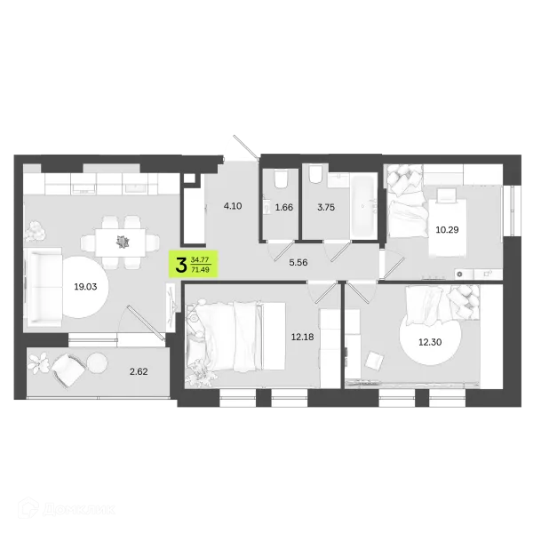 3 комн. квартира в Уфе в ипотеку от 77 220 руб/месяц