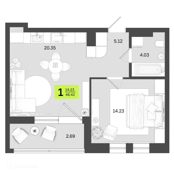 1 комн. квартира в Уфе в ипотеку от 43 772 руб/месяц