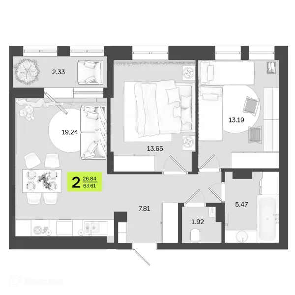 2 комн. квартира в Уфе в ипотеку от 64 335 руб/месяц